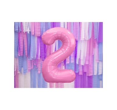 Folieballong. Nummer ""2"", pastellrosa. Storlek 34""/86 cmOuppblåst ballong.Läs mer om produkten