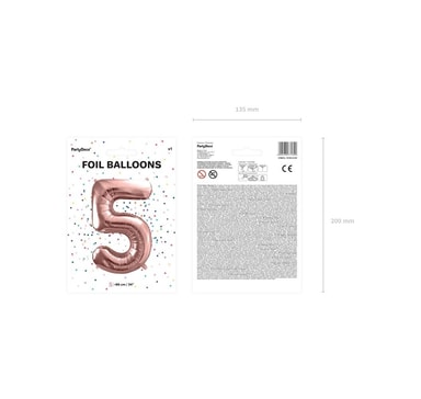 Folieballong. Nummer ""5"", roséguld. Storlek 34""/86 cmOuppblåst ballong.Läs mer om produkten
