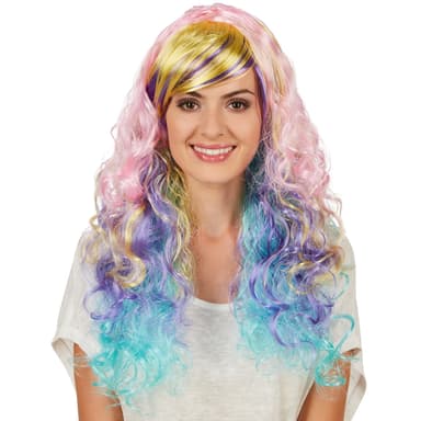 Med den lockiga peruken blir du defnitivt uppmärksammad. Peruken kan du bära som fe eller en varelse från fantasins värld. Även om du vill klä ut dig till färgglad prinsessa passar den här peruken utmärkt. På nolltid får du med peruken en helt ny look och underbart vackert långt hår. Perfekt för maskerader, temafester och festivaler. Damer som önskar att de hade långt hår och som vågar synas i färger, kommer att gilla den här peruken. Med din nya frisyr blir du blickfånget på alla fester. Ingen mer bad-hair-day. Låt håret helt enkelt försvinna under peruken och håva in komplimangerna för din nya hårfärg. Vill du prova ännu fler frisyrer? Inga problem. Hos oss väntar många fler peruker på dig!