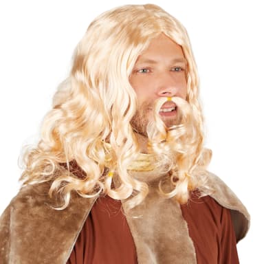Blond vikingperuk levereras inkl. skägg, material: 100 % polyester.