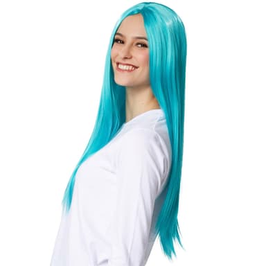 Den här långhåriga peruken med långt, glansigt fall är perfekt för maskeraden, på cosplay-events eller andra evenemang. Det sidenglänsande, naturliga utseenden gör att den ser precis ut som äkta hår. Hakspännet och det elastiska bandet gör att den sitter perfekt. Eftersom den väger så lite och är av hög kvalitet är den behaglig att bära, Material: 100 % polyester.