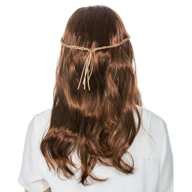 Peruk med långt hår, med 4 små tofsar och pärlor samt små ben som dekoration, längd: ca 50 cm, material: 100 % polyester.