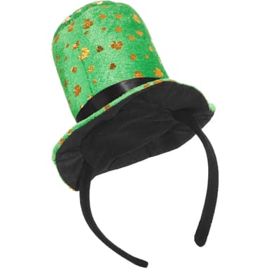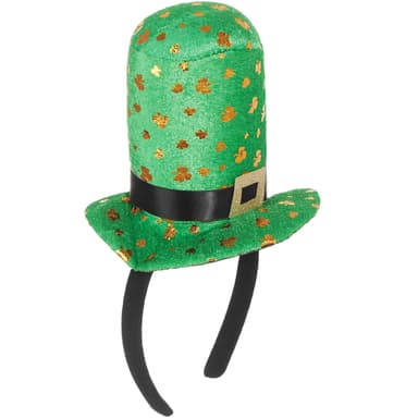 Klä ut dig med St. Patrick’s Day minicylinderhatten gyllene klöver, symbolen för lyckan, på irländarnas nationaldag. Den lilla hatten med brätte och band med spänne pryds av många gyllene klöver. För garanterad lycka på St. Patrick’s Day.