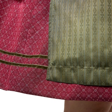 Kjolen i olivgrönt tyg med fin randstruktur skapar en spännande kontrast till överdelen. Med sin klassiska längd framstår dirndeln som både festlig och vardaglig. Den perfekt matchande rosetten tar upp kjolens färg och drar alla blickar till sig – idealisk för alla som vill visa sig stilmedvetna och ändå traditionsbundna.