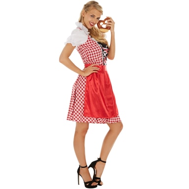 Med Dirndl Wiesn Madl kan du dela ut massor av kyssar vid varje bayersk event. Kostymen i traditionell look har en snygg snörning och en påsydd blus med volanger. Det matchande förklädet är perfekt färgkoordinerat. Den kortklippta kjolen låter dig visa mycket ben i denna outfit. Dra uppmärksamhet till dig själv med den snygga Wiesn Madl dirndl, material: 100 % polyester.