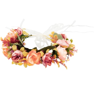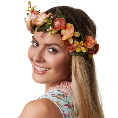 Den exklusiva blomsterkransen Herbstwiese är ett blickfång som passar för många tillfällen. Denna eleganta huvudbonad övertygar med sin naturlighet och de omsorgsfullt bearbetade detaljerna. Med satinbandet kan storleken anpassas individuellt. Den storslagna blomsterkransen Herbstwiese ger din outfit det där lilla extra, Material: plast, textil.