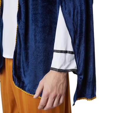 • Sjal av blå sammet med guldbård