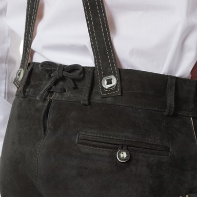 Trots sitt robusta utseende är materialet mjukt och känns behagligt mot huden. Våra lederhosen ""Jannis"" är lättskötta, slitstarka och utvecklar en unik patina med tiden – en verklig fördel för entusiaster av traditionella folkdräktskläder. De passar perfekt till en rutig skjorta, traditionella strumpor och Haferl-skor.