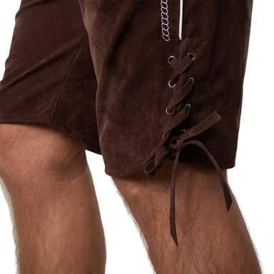 Dessa lederhosen kombinerar rustik charm med traditionell elegans och ger din traditionella oktoberfestoutfit en elegant touch. Med sitt klassiska traditionella utseende och fina vita broderier är de den perfekta följeslagaren för oktoberfest, maskerader och temafester. Oavsett om de kombineras med en traditionell blus eller en skjorta så kommer dessa ""läderbyxor"" alltid att göra din outfit till festens mittpunkt.