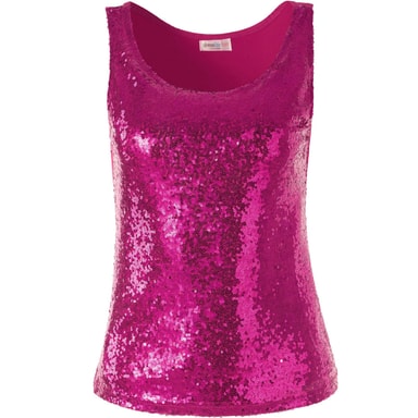 Mycket glamour och en snygg utstrålning betecknar detta snygga paljettlinne för kvinnor. När linnet utsätts för ljus eller rörelse skapar de otaliga, tunna paljetterna på framsidan ett magiskt glittrande och gnistrande. Denna ärmlösa överdel med rund halsringning sätter armar och axlar i fokus. Det elastiska materialet gör den lätt kroppsbetonade överdelen med rund halsringning bekväm och behaglig att ha på sig, Material: 100 % polyester.