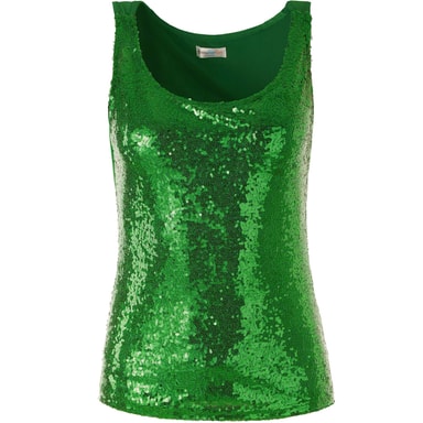 Mycket glamour och en snygg utstrålning betecknar detta snygga paljettlinne för kvinnor. När linnet utsätts för ljus eller rörelse skapar de otaliga, tunna paljetterna på framsidan ett magiskt glittrande och gnistrande. Denna ärmlösa överdel med rund halsringning sätter armar och axlar i fokus. Det elastiska materialet gör den lätt kroppsbetonade överdelen med rund halsringning bekväm och behaglig att ha på sig, Material: 100 % polyester.