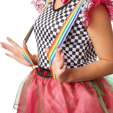 Nu blir det fart! Var den galna clownen på alla maskeradfester. Som lustig 80-talsinspirerad neonfärgad clown passar din outfit som handen i handsken när det är dags för maskerad och galna fester.