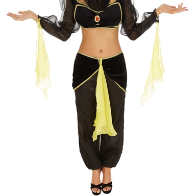 Med denna utklädnad är du antingen en orientalisk magdansös, en snygg prinsessa eller en förtjusande ande i flaskan. Dansa förföriskt genom natten i damdräkten. Som magdansös stjäl du lätt uppmärksamheten från en och annan dam och kommer dra sultaners och shejkars blickar åt dig. Öva in en liten magdans för att övertyga alla om att du verkligen är en orientalisk dam. Då blir din spännande show garanterat en höjdpunkt på maskeraden. Med dräkten som ande i flaskan kommer du stå för oförglömliga orientaliska ögonblick.