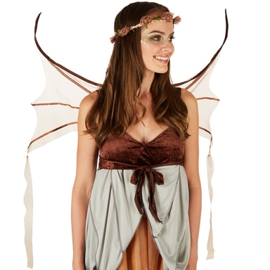 Maskeraddräkten Naturväsen för damer består av en kort och vacker klänning. Till detta medföljer vingar med resår och ett förtrollande hårband, material: 100 % polyester.