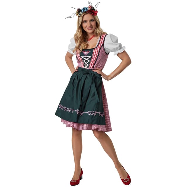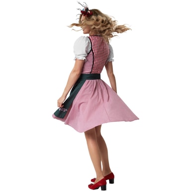 Tack vare det klassiska rutmönstret är denna dirndl otroligt mångsidig och passar bra till både traditionella accessoarer och moderna plagg. Oavsett om den bärs med en blus och traditionell jacka eller avslappnat med en jeansjacka, är denna dirndl en riktig allroundare och ger en elegant touch till din outfit. Med sin romantiska design och charmiga detaljer är den den perfekta följeslagaren för oktoberfest eller andra festliga tillfällen.