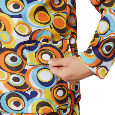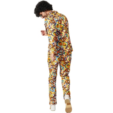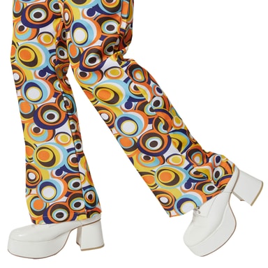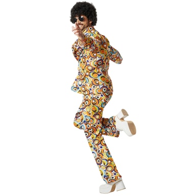 Dansa genom natten som på 70-talet! Med herrkostymen i disco-retro-cirkelmönster blir du stjärnan på dansgolvet. Setet innehåller en överdel och byxor med ett iögonfallande cirkeldesign som fångar den ikoniska stilen från discoeran perfekt. Perfekt för fastlag, karneval eller temafester med 70-talstema.