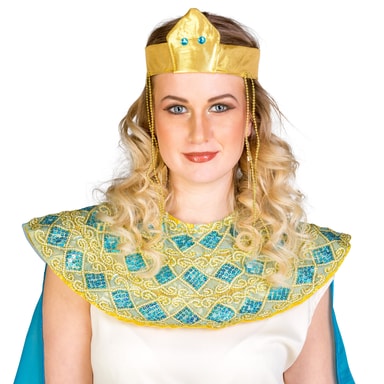 Maskeraddräkt Kleopatra består av en förtjusande klänning, knytskärp, kungligt hårsmycke, krage och handledssmycke med kardborreband, material: 100 % polyester.