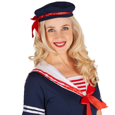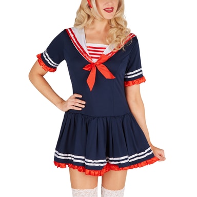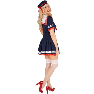 Maskeraddräkten matros för damer består av en förtrollande klänning och en matchande hatt. Material: 100 % polyester.