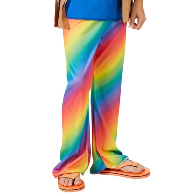 Maskeraddräkt Hippie Peace för pojkar består av en vacker t-shirt, en häftig mockaliknande väst och färgglada utställda byxor. Till dräkten medföljer ett flott hippie-hårband, material: 100 % polyester.