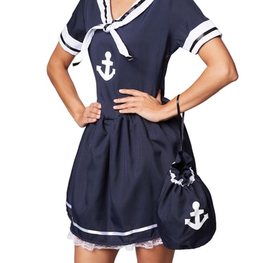 Den stilrena maskeraddräkten seglare för damer består av en underbart vacker klänning i marin stil.
