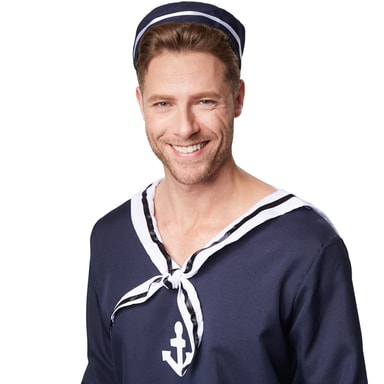 Maskeraddräkten seglare består av byxor och en vacker överdel i marin stil med en vacker pysydd knut i kragen. Hatten fulländar seglaruniformen. Material: 100 % polyester. Ohoj! Seglaren sätter maskeradbåten i gungning.Läs mer om produkten