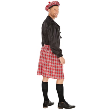 Maskeraddräkten Skotte består av en häftig kilt. Kilten har påsydd fuskpäls fram och typiskt skotskrutigt mönster. Till detta medföljer en elegant skjortliknande satin-t-shirt. Dessutom får du med en skotsk mössa till dräkten, även den i rutig stil, material: 100 % polyester.