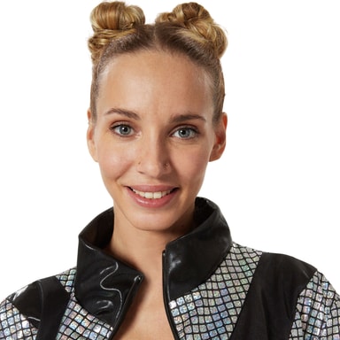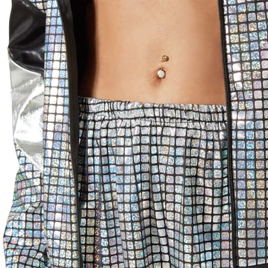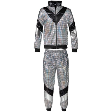 Jackan utmärker sig med sin iögonfallande design och glänsande yta som direkt fångar uppmärksamheten. Byxorna kompletterar setet med en bekväm passform och rörelsefrihet, så att du kan festa obehindrat. Komplettera outfiten med ett par av våra retroglasögon eller en färgglad peruk för att ytterligare förfina din look.