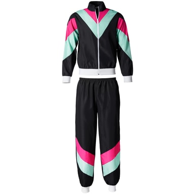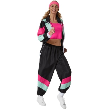 Jackan i klassisk snitt ger dig flexibilitet och komfort tack vare dragkedjan. De matchande byxorna med elastisk midja ger rörelsefrihet, så att du kan njuta av dansgolvet till fullo. Med accessoarer som neon-svettband eller retro-solglasögon kan du ytterligare anpassa looken.