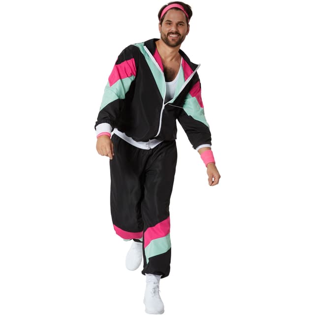 Välkommen tillbaka till de färgglada 80- och 90-talen! Med denna herrkostym retro träningsoverall är du perfekt rustad för varje fest. Kombinationen av jacka och byxor i klassisk retrostil gör dig till den absoluta höjdpunkten på maskerad-, karnevals- eller temafester.