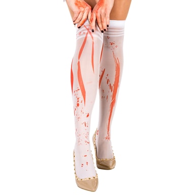 De noggrant utformade accessoarerna som kompletterar outfiten är särskilt anmärkningsvärda: de knähöga strumporna med matchande blodfläckar ger dräkten en autentisk känsla och understryker det mörka temat. Ansiktsmasken är inte bara ett praktiskt accessoar utan ger också looken en mystisk och mystisk aura. Ett diadem med en sjuksköterskesymbol kompletterar ensemblen, avrundar looken perfekt och fullbordar din förvandling till en kuslig zombiesjuksköterska.