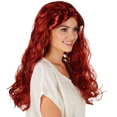 Peruk Renässansens Drottning har vackert långt syntetiskt hår och en fläta som dekoration, material: 100 % polyester.