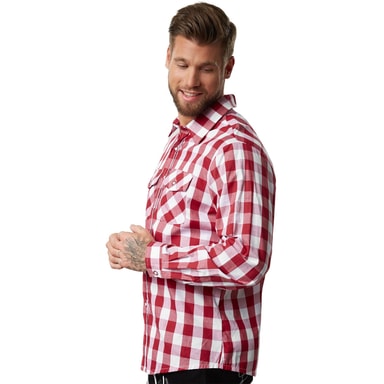 Skjortan Maxl är en klassiker och bärs gärna till traditionella lederhosen. Tyget är behagligt tunt och känns bekvämt mot huden. Rutornas bredd och höjd är i ett större format. Knapparna återspeglar skjortans färg. De två stängningsbara bröstfickorna är perfekta för att förvara mindre saker som nycklar eller pengar. Traditionell och elegant: Skjortan Maxl passar inte bara utmärkt på Oktoberfesten, Material: 100 % bomull.