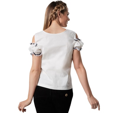 • Tracht-blus med Carmen-halsringning