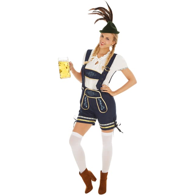 De korta skinnbyxorna är lika trendiga för damer idag som en flott dirndl. Och ännu mer bekväma. Med denna modell av polyester väljer du en dräkt som ser ut som traditionella lederhosen och som dessutom är mycket bekväm.