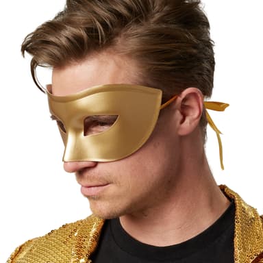 Denna enfärgade, venetianska mask är en tidlös elegant klassiker. Den vackert formade accessoaren lämnar tillräckligt med utrymme för ögon och näsa och döljer samtidigt din identitet. Med de två smala satinbanden kan den bekväma halvmasken anpassas till varje huvudstorlek, Material: plast, polyester.
