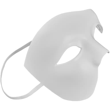 Den venetianska masken Fantom har en speciell aura. Maskens hemlighetsfulla, mystiska och eleganta utseende drar allas blickar till sig. Denna enfärgade, glänsande accessoar täcker den högra sidan av ansiktet och lämnar munnen och det vänstra ögat fritt. Med det elastiska gummibandet kan halvmasken enkelt bäras av varje huvudstorlek, Material: plast, polyester.