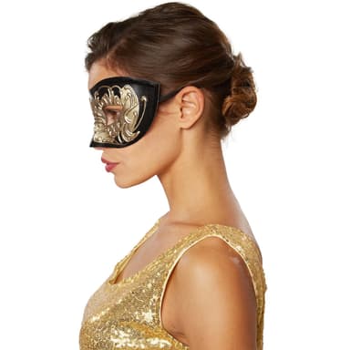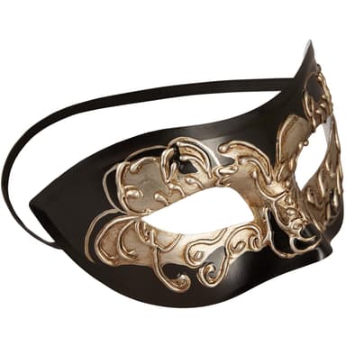 Denna venetianska mask med ornament ger ett hemlighetsfullt och mystiskt intryck. Den vackert formade accessoaren lämnar tillräckligt med utrymme för ögon och näsa och döljer samtidigt din identitet. De vackra utsmyckningarna med skimrande matt yta sticker ut mot den enfärgade masken. Genom det elastiska gummibandet kan halvmasken enkelt bäras av varje huvudstorlek, Material: plast, polyester.