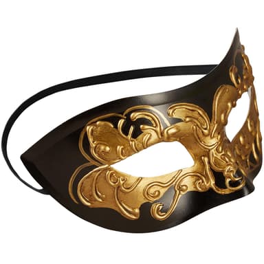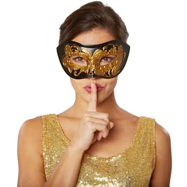 Denna venetianska mask med ornament ger ett hemlighetsfullt och mystiskt intryck. Den vackert formade accessoaren lämnar tillräckligt med utrymme för ögon och näsa och döljer samtidigt din identitet. De vackra utsmyckningarna med skimrande matt yta sticker ut mot den enfärgade masken. Genom det elastiska gummibandet kan halvmasken enkelt bäras av varje huvudstorlek, Material: plast, polyester.