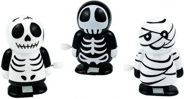 3 små leksaksskelett med uppvridningsbar fjäder. Perfekta för att ställa fram under halloween. Höj stämingen på halloweenfesten genom att ställa dessa små roliga skelett på bordet. Det är också en rolig leksak att ge bort om du inte vill ge godis till dem som frågar.