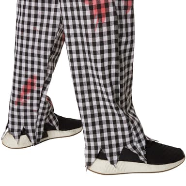 Pojkdräkten Kuslig kock består av en vit kockrock med den typiska dubbla knappraden och en svart kontrasterande krage mitt fram som sträcker sig hela vägen ner. Till detta medföljer matchande byxor med svartvitt rutigt mönster. Byxorna har linning med resår. På ärmarna och fållen på överdelen samt nedtill på byxorna är tyget fransigt. Den medföljande kockmössan med resårinsats och kockförkläde med snörning gör dräkten komplett. Alla delar av dräkten är nedfläckade med blod, material: 100 % polyester.