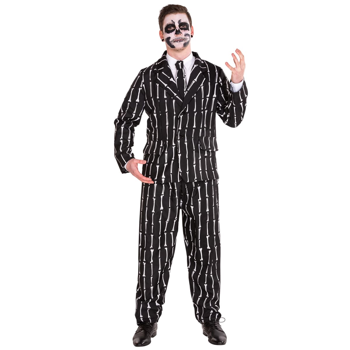För det moderna maskeradspöket med stil och klass! Spöka till maskerad festerna med den här herrdräkten. Med den randiga, skelettliknande kostymen och slipsen kan du avslappnat hemsöka varje maskerad. Var modig och välj herrkostymen ben, för att ställa till med riktigt liv på nästa maskerad.