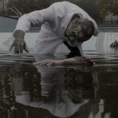 Den kusliga doktorn är säkert inte bäst lämpad att hjälpa patienter att bli av med sin sjukhusskräck. Så som han ser ut just när kan man allt tvivla på hans förmågor. Den som har bokat en tid hos honom bör nog helst be om en ny. För idag ställer den här läkaren bara en diagnos: zombie.
