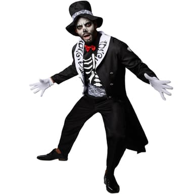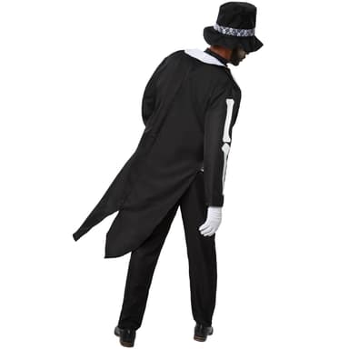 Det kan inte vara sant! I första ögonblicket är det inte svårt att få rysningar i hela kroppen när man ser den kusliga gentlemannen en dimmig natt. Men mycket snart är rädslan som bortflugen. För i denna dödseleganta outfit döljer sig en galant benman som förför med sin artighet, charm och en aning humor.