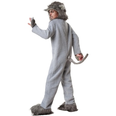 Uni6-dräkten Lilla vargen Vildfång består av en overall samt en huva. Overallen är tillverkad av ljusgrått, uppruggat och varmt tyg. Den långa dragkedjan i ryggen gör det lätt att kliva i och ur dräkten. Nedtill på ryggen finns en vargsvans av grå konstpäls. Dräkten accentueras av en grå bräm av konstpäls på kragen. Denna bräm återfinns också på de fyra tassarna som fästs vid händerna och fötterna med resår. Den medföljande vargmössan består av konstpäls med innerfoder av tyg och knäpps under hakan med kardborreband, material: 100 % polyester.