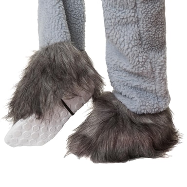 Unisex-dräkten Lilla vargen Vildfång består av en overall samt en huva. Overallen är tillverkad av ljusgrått, uppruggat och varmt tyg. Den långa dragkedjan i ryggen gör det lätt att kliva i och ur dräkten.Läs mer om produkten