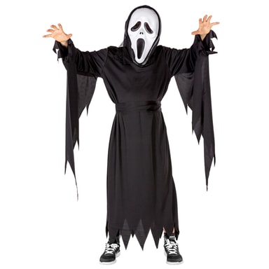 Scream halloweendräkten för barn är den perfekta dräkten för halloweenfester och maskerader som garanterar att skrämma många! Med en helkroppsdräkt och lång mantel ger den ditt barn en unik, läskig look. Detaljer som den spännande masken och det praktiska knytbältet gör designen särskilt iögonfallande och kuslig.