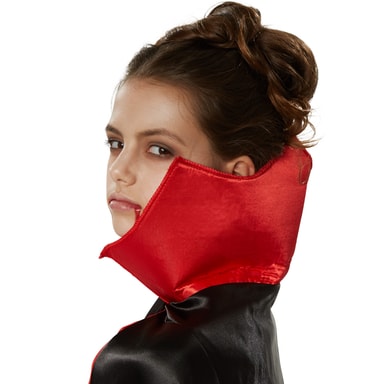 Den tvåfärgade Vampyrcapen för barn är ärmlös med krage och snörning, material: 100 % polyester.