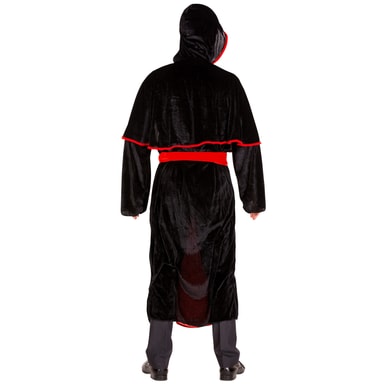 Vampyr-maskeradräkten är den perfekta dräkten för speciella tillfällen och garanterar att den drar blickarna till sig. Med en lång dräkt och sammetslen finish ger den dig en unik look. Detaljer som den huvade capen och det knytbara skärpet gör designen särskilt slående och elegant.