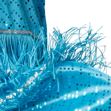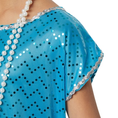 Broadwaystjärnor känner sig som hemma i det gyllene 20-talet. Den lätta tredelade klänningen och de långa fransarna bjuder in till dans. Denna skimrande outfit glänser på dansgolvet. Redo för en swing? Som Broadwaystjärna dyker ditt barn in i en spännande tid med berömda klubbar och varietéer.