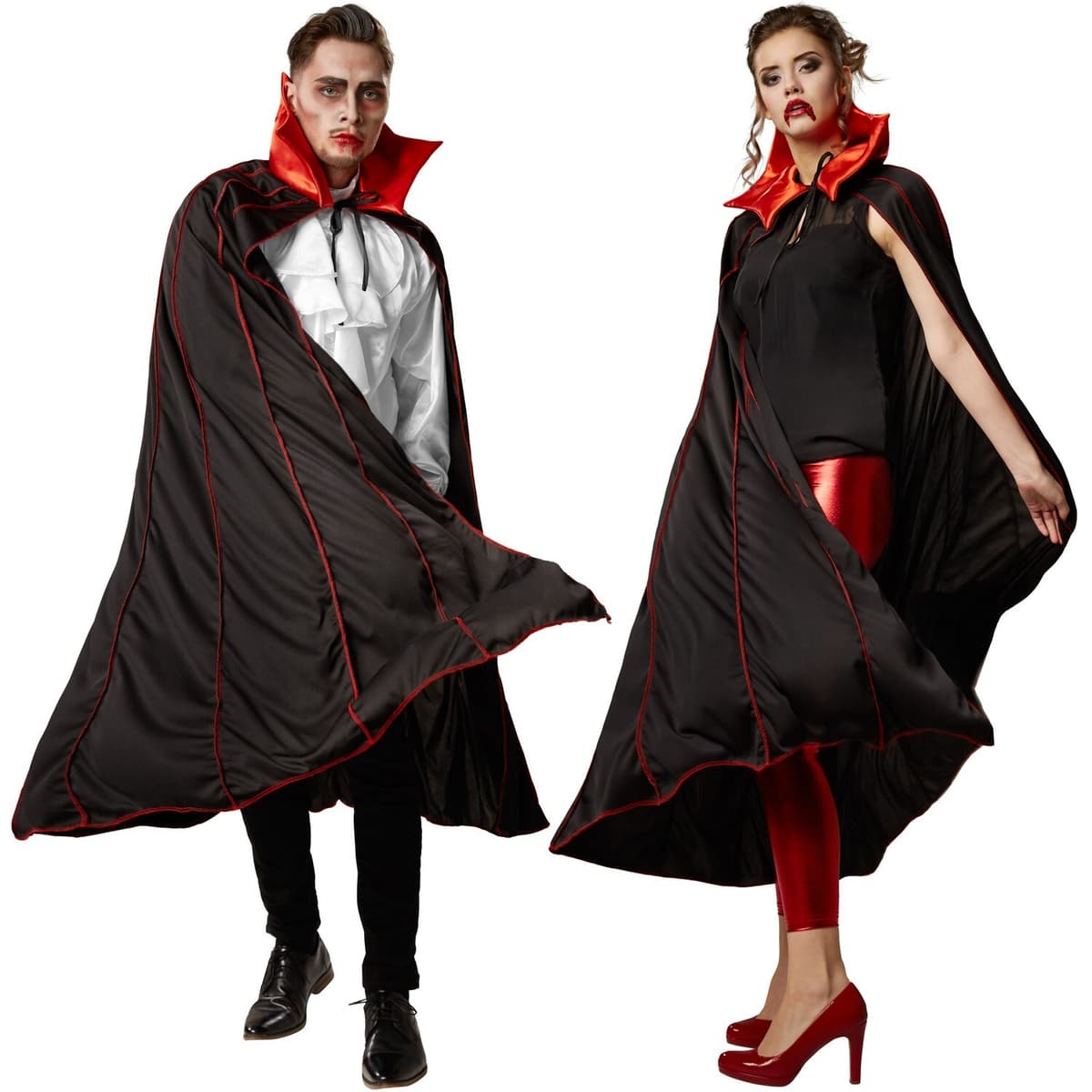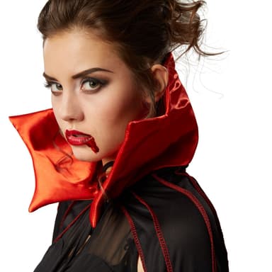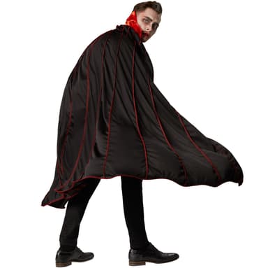 Vad vore väl greve Dracula utan sin mantel? Dra på dig denna vampyrcape med krage och kliv upp ur din kista som mörkrets greve eller grevinna och sätt fart på festen. Unna dig en Bloody Mary i baren och undvik som blodsugande förförare direkt solljus och vitlök.